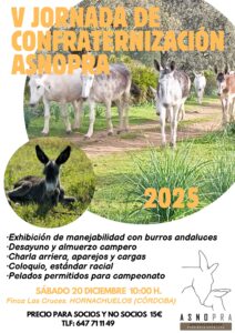 La Asociación del Asno de Pura Raza Andaluza tiene el placer de invitarle a su V Jornada de Confraternización, un encuentro para disfrutar, aprender y compartir nuestra pasión por el asno andaluz.